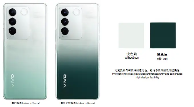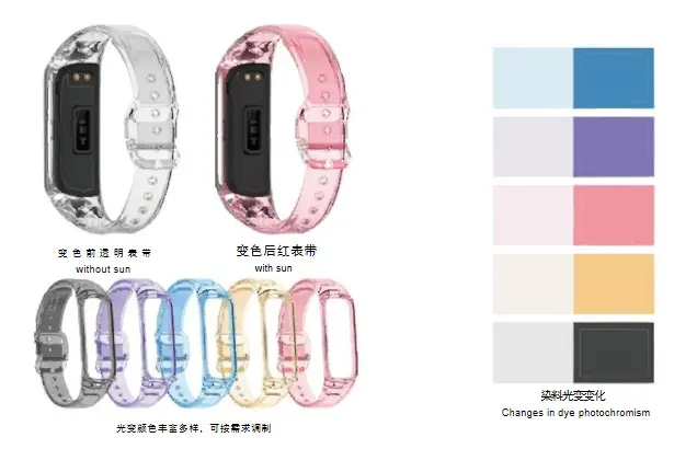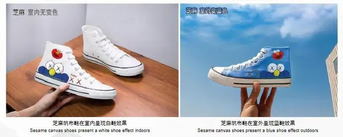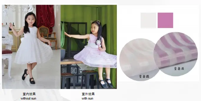 Bahan Fotokromik adalah bahan serbuk fotokromik yang dibuat dengan cara membungkus pewarna fotokromik dalam mikrokapsul melalui proses khusus, yang setelah disinari oleh sinar matahari (ultraviolet) dapat menyerap energi sinar matahari (ultraviolet), sehingga terjadi perubahan struktur molekul, sehingga terjadi perubahan panjang gelombang serapan, sehingga mengakibatkan perubahan warna; Ketika energi sinar matahari (ultraviolet) hilang, ia kembali ke struktur molekul aslinya dan mengembalikan warna aslinya. Ciri: